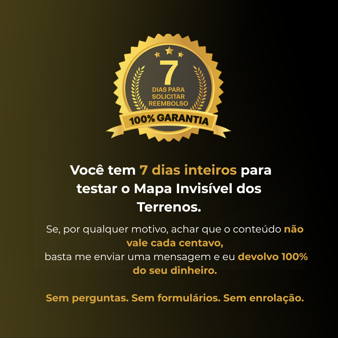 As informações coletadas neste site são utilizadas apenas para processar pedidos e comunicações do produto Mapa Invisível dos Terrenos, conforme a Lei nº 13.709/2018 (LGPD).